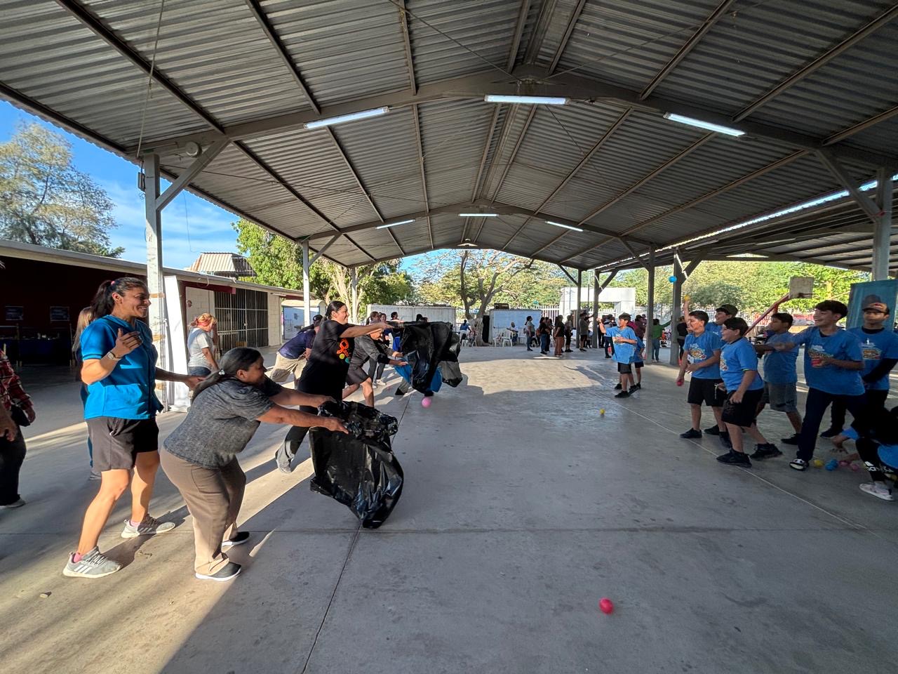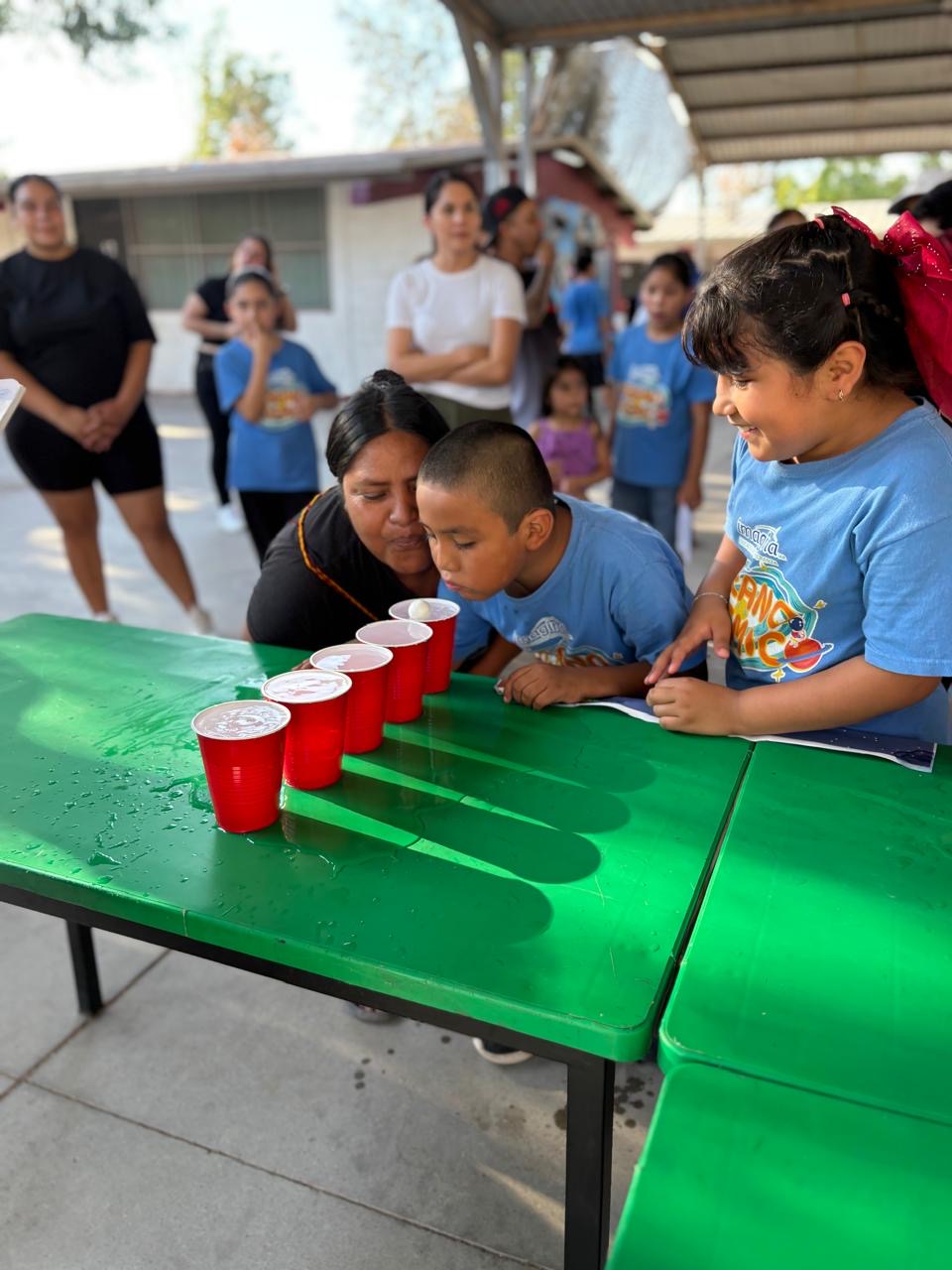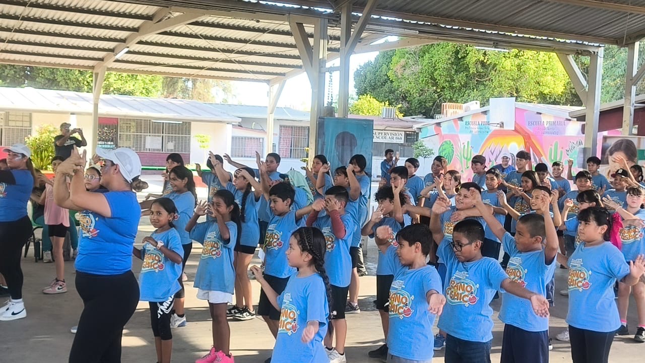 Niños posando con medallas y trofeos en el Rally, con sonrisas, celebrando sus logros durante una actividad al aire libre.